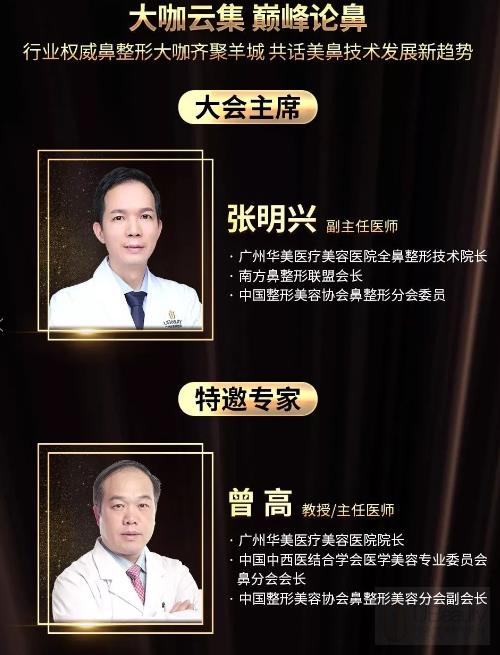 大会主席/南方鼻整形联盟会长/广州华美全鼻整形技术院长【张明兴副主任医师】与广州华美院长/中国中西医结合学会医学美容专业委员会鼻分会会长【曾高主任】将率领国内鼻整形领域医师巅峰论鼻,开启一场高规格学术盛宴!届时,鼻整形医师倾情授课,针对鼻整形领域的各种问题进行深入的技术分析,分享学术成果。