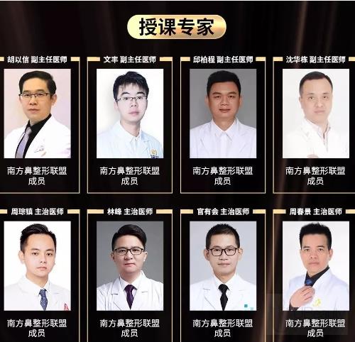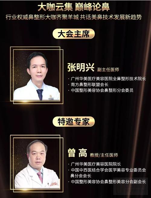 此次论坛云集广州华美医疗美容医院全鼻整形技术院长/南方鼻整形联盟会长/中国整形美容协会鼻整形分会委员,即大会主席『张明兴主任』,中国中西医结合学会医学美容专业委员会鼻分会会长/中国整形美容协会鼻整形美容分会副会长『曾高主任』,中国医用膨体材料的创始人和领导者/上海索康医用材料有限公司董事长『叶明董事长』,南方鼻整形联盟成员胡以信主任、邱柏程主任、沈华栋主任、文丰主任、周琮镇医师、林峰医师、官有会医师等参与。