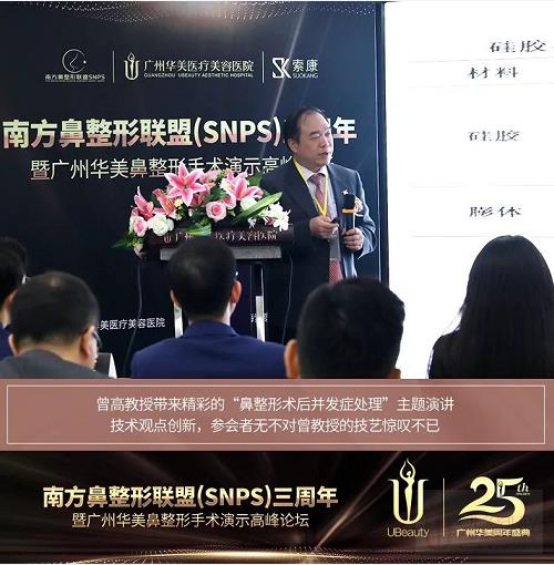 2019年11月2日,南方鼻整形联盟(SNPS)三周年暨广州华美鼻整形手术演示高峰论坛在广州华美医疗美容医院隆重举行。此次论坛由南方鼻整形联盟(SNPS)牵头主办,广州华美医疗美容医院全力承办,上海索康医用材料有限公司共同协办成立,助力广州华美25周年庆。在11月的羊城演绎了一场学术与艺术交融、破旧与立新更迭的盛会,掀起了全新视角的鼻整形美学风潮。