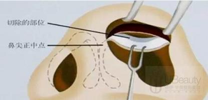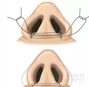 1.调整鼻翼软骨——适合鼻翼软骨宽,但软组织量正常的。